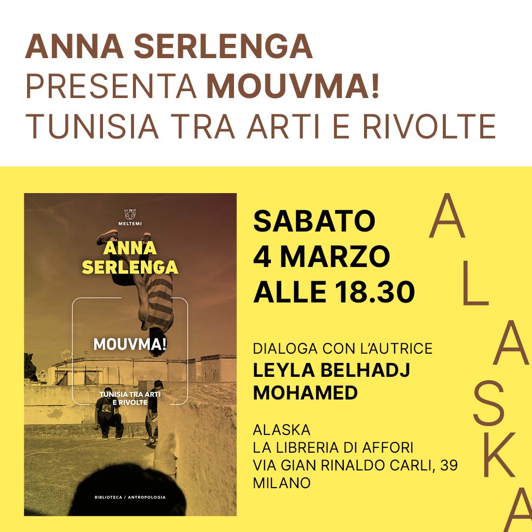 Anna Serlenga presenta Mouvma! Anna Serlenga presenta Mouvma! febbraio 21, 2023 Redazione Sabato 4 marzo alle 18.30 Dialoga con l’autrice Leyla Belhadj Mohamed Alaska La libreria di Affori Via Gian Rinaldo Carli, 39 Milano Più nuovo L'associarsi quotidiano. Terzo settore in cambiamento e società civile Vedi tutti i post Older L'educazione come pratica di libertà