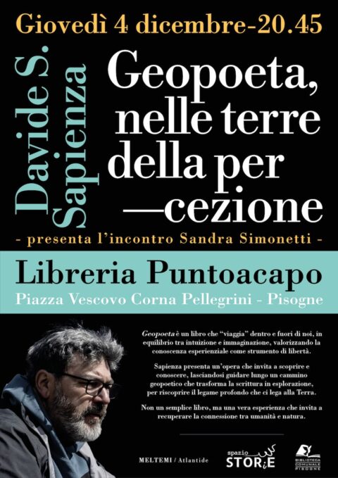Leggi tuttoGiovedì 4 dicembre-20.45 Libreria Puntoacapo Piazza Vescovo Corna Pellegrini – Pisogne Davide S. Sapienza Geopoeta, nelle terre della percezione Presenta…
