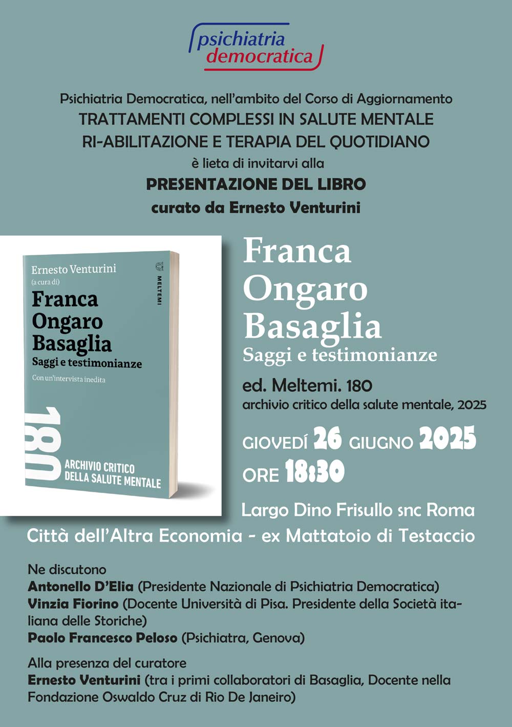 Ernesto Venturini (tra i primi collaboratori di Basaglia, Docente nella Fondazione Oswaldo Cruz di Rio De Janeiro)