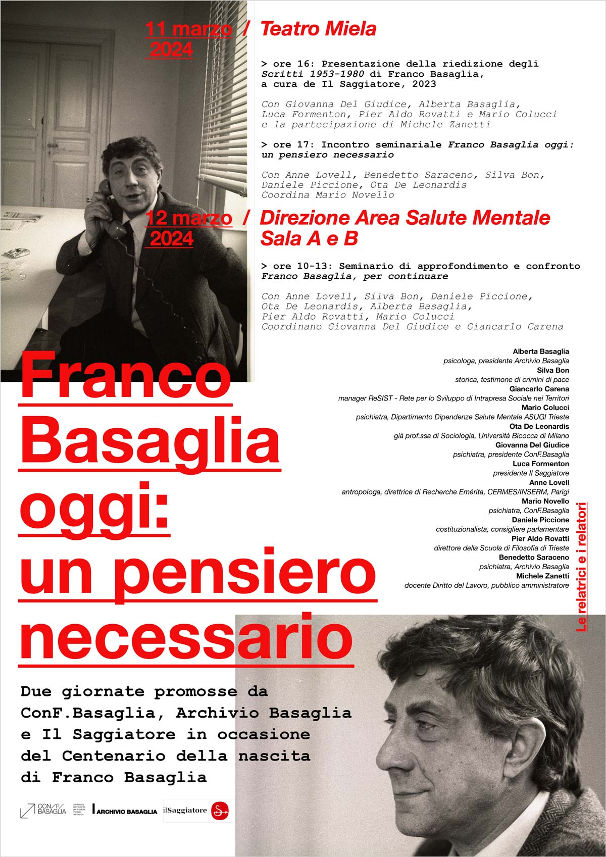 > ore 16: Presentazione della riedizione degli Scritti 1953-1980 di Franco Basaglia, a cura de Il Saggiatore, 2023