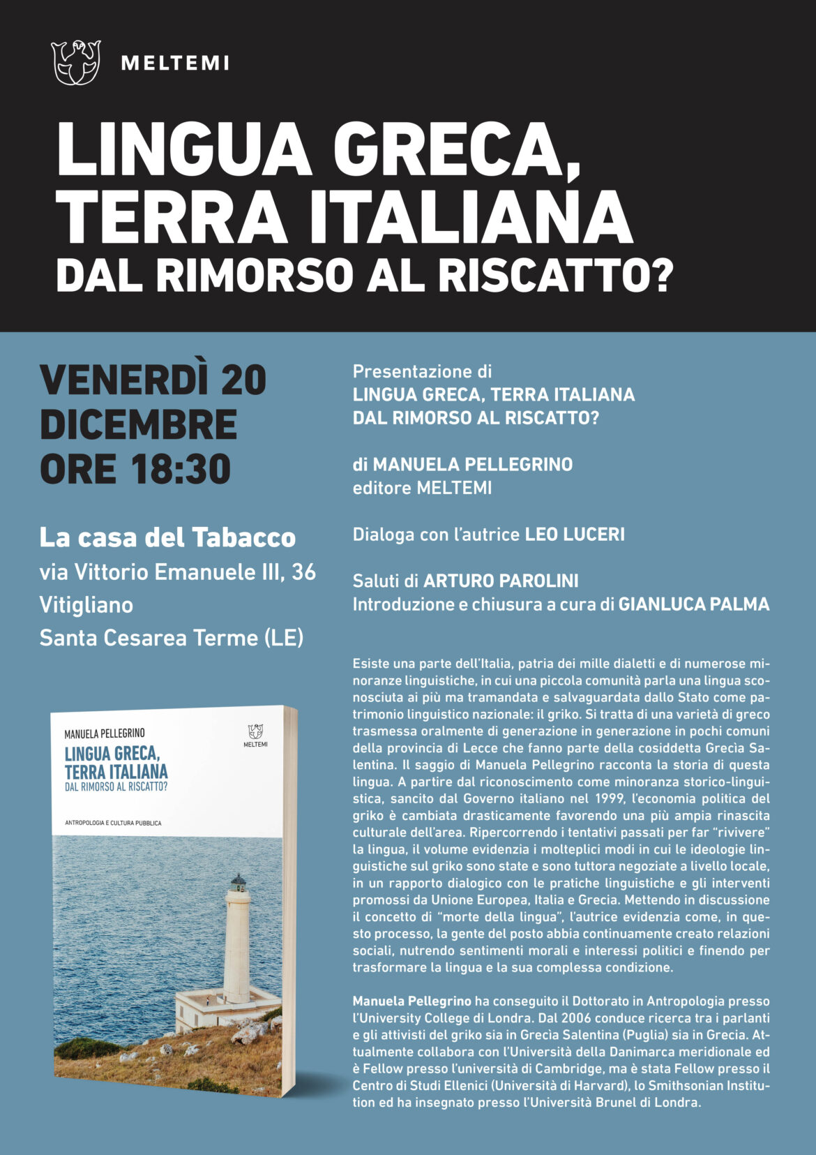 Presentazione del volume Lingua greca, terra italiana. Dal rimorso al riscatto?