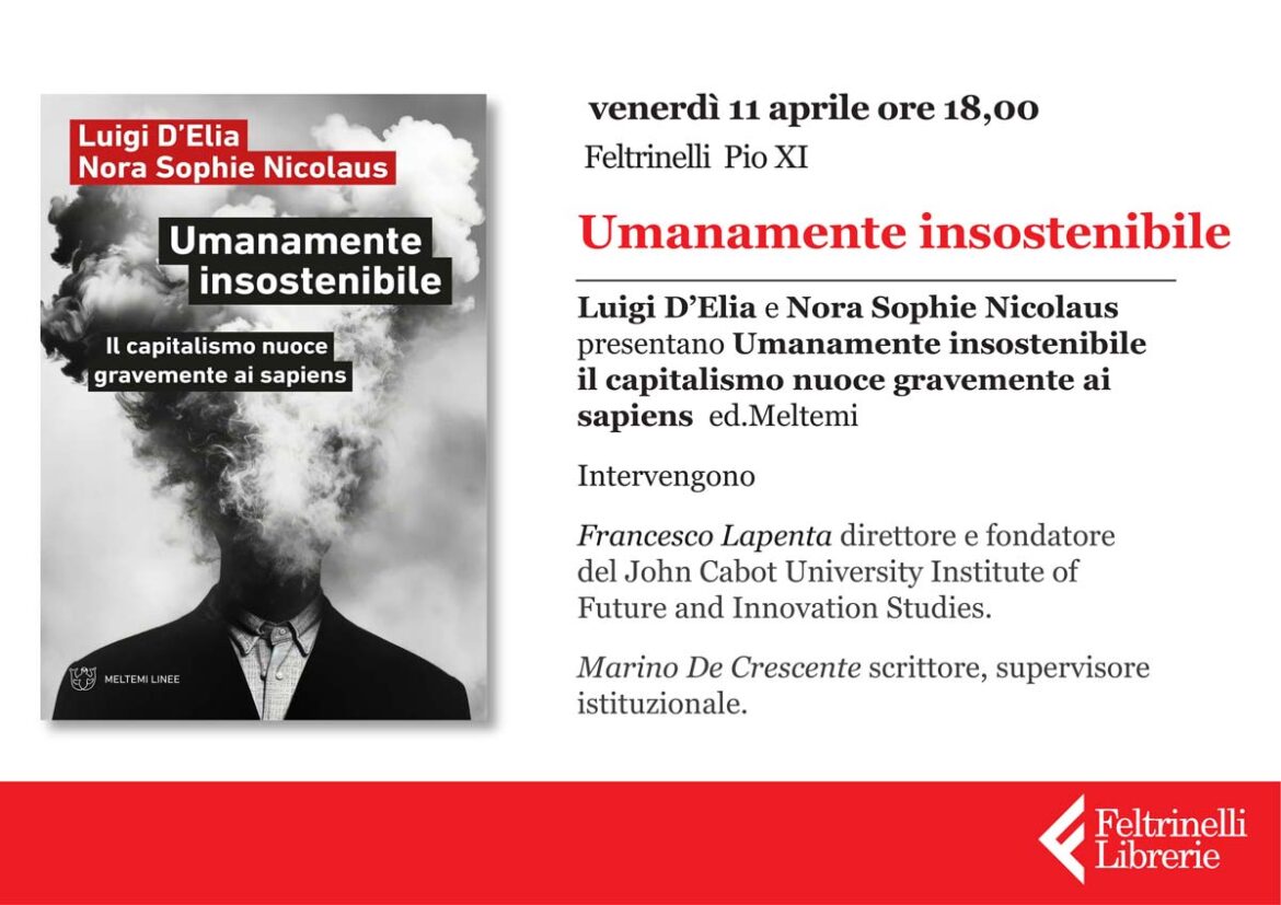 Luigi D’Elia e Nora Sophie Nicolaus presentano Umanamente insostenibile il capitalismo nuoce gravemente ai sapiens ed.Meltemi